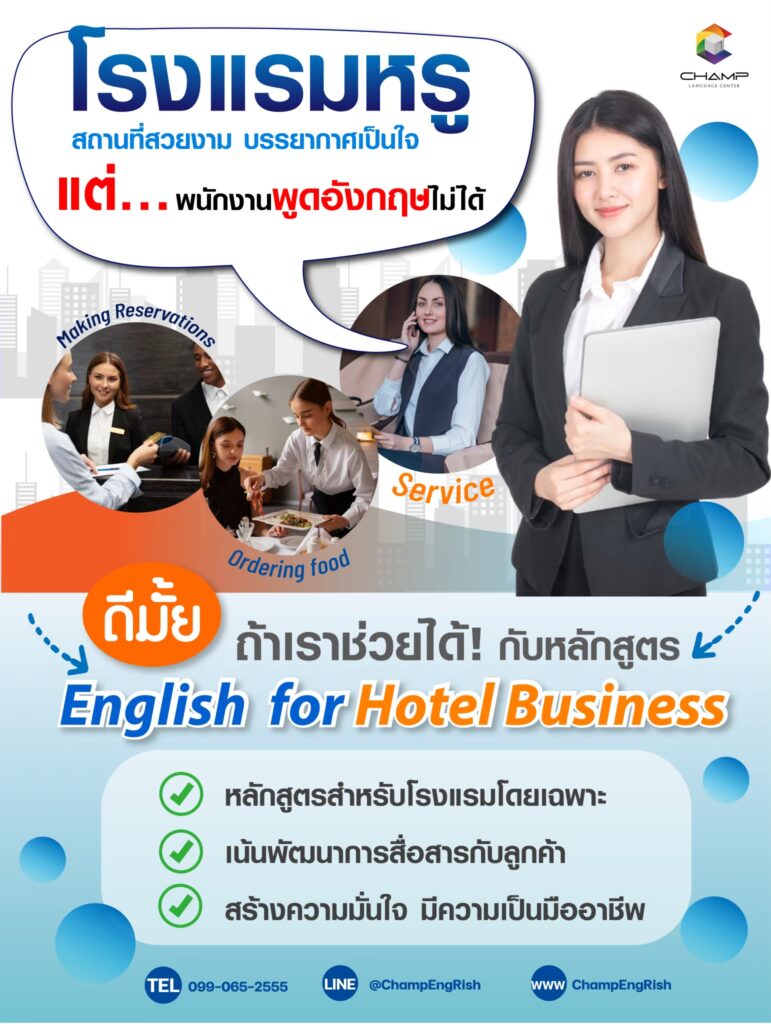 หลักสูตรที่พัฒนาและปรับให้เหมาะสำหรับการบริการในโรงแรมโดยเฉพาะ เน้นการพัฒนา ฝึกทักษะด้านการสื่อสารกับลูกค้า ลงมือทำจริง สร้างความมั่นใจ มีความเป็นมืออาชีพ รับรองผล ประเมินทักษะก่อนและหลังอบรม เพื่อให้มั่นใจว่าได้ผลจริง และในคอร์สกลุ่มนี้จะมี 2 คอร์สได้แก่